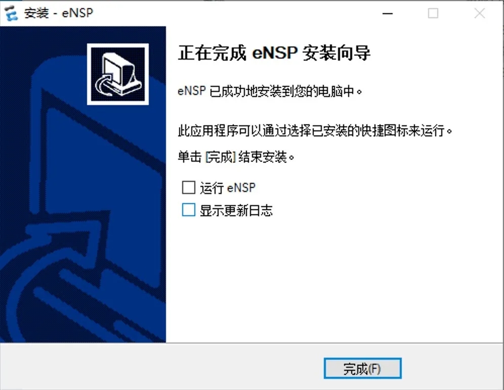 注意,安装完成之后不要立即打开 eNSP,也就是在这一步取消复选框再点完成