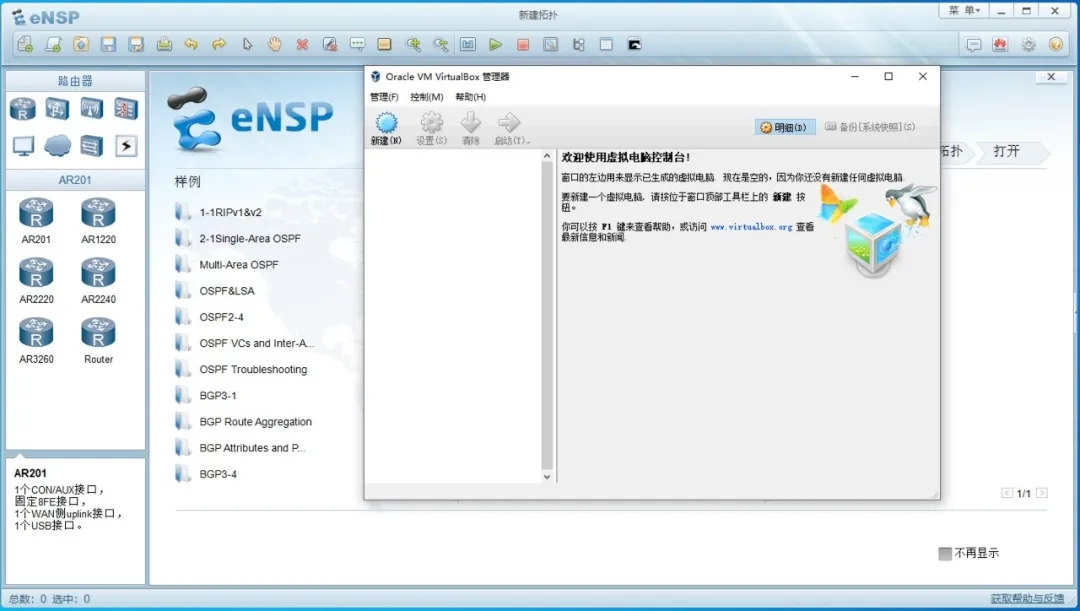 现在我们进入 VBox,这里没有设备,我们需要进入 eNSP 设置