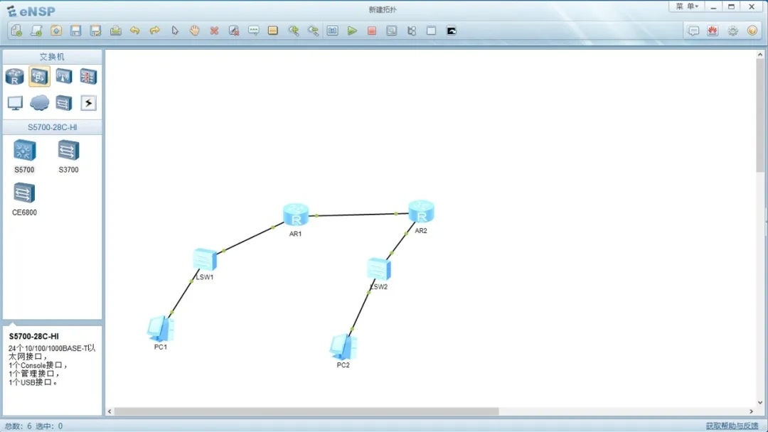 我们在拓扑上添加上设备测试一下,路由器选择 AR3260(基本上这个能用其他的都 OK 了),交换机选择 S3700