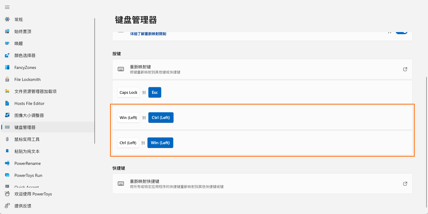 Win 的话,由于更习惯 mac 的 ⌘ 键,所以直接使用 PowerToys 中键盘快捷键将 Win 和 Ctrl 键进行了调换,并且 Win 11 切换输入法语言的快捷键是 Win + Space,所以这样就和 mac 下统一了