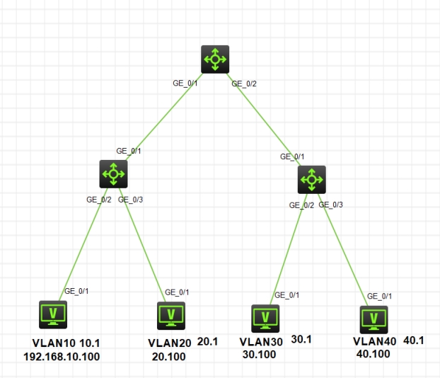任务——Vlan 间通信:VLAN10、20、30、40 内的主机之间互 ping 成功