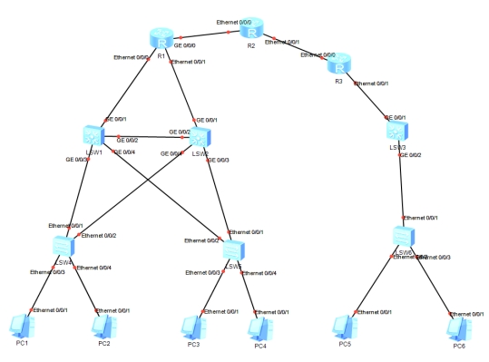 说明: 1.交换机和三层交换机配置RIP 2.左边静态地址、右边DHCP 3.左边除了DHCP,昨天的都配上