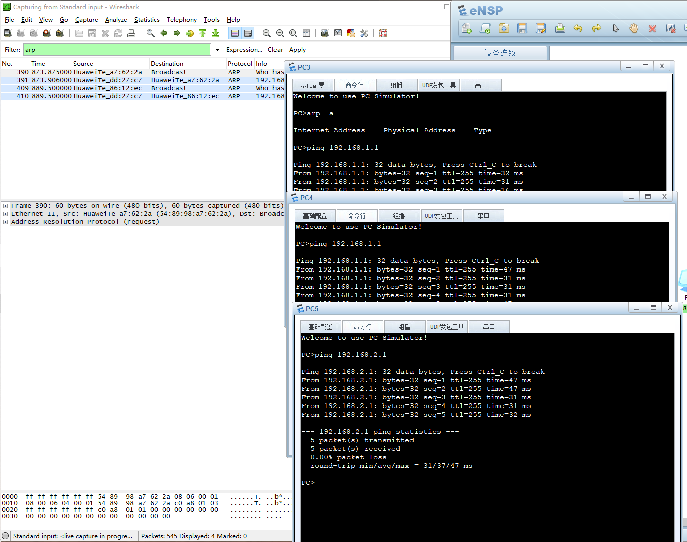 通过实验了解 ARP 和代理 ARP,并掌握其配置
