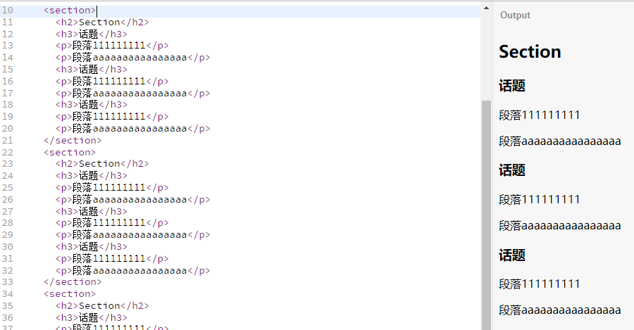 article>section*4>h2{Section}+(h3{话题}+p{段落111111111}+p{段落aaaaaaaaaaaaaa})*4