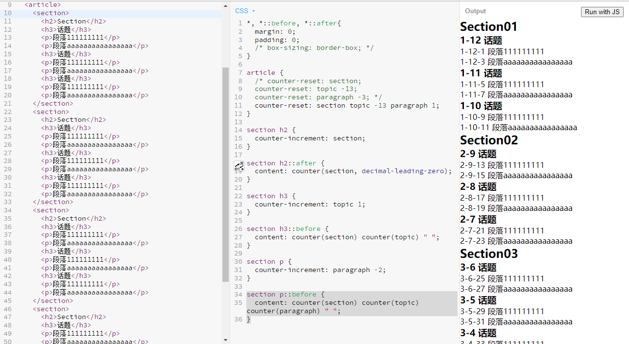 1、使用 counter-reset 属性初始化计数器的值
