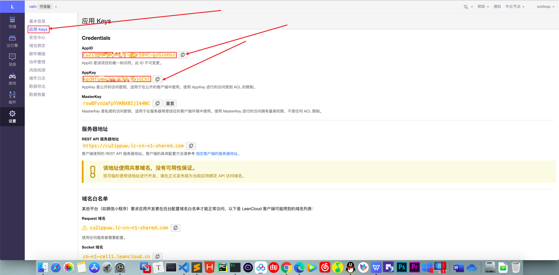 我们只需要里面的 AppID 和 AppKey,现在先开始下面操作,这两个等下会用到