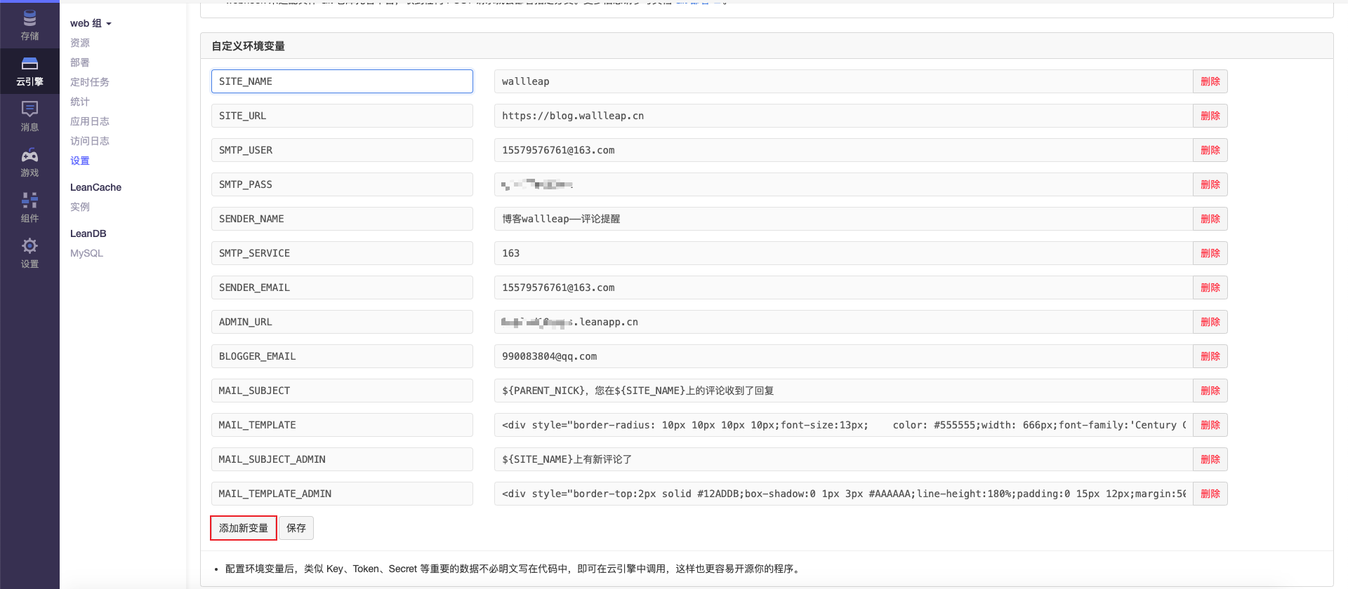 上面还有四个变量没说,这四个就是用来设置邮件模板的,当然,你也可以用 LeanCloud 自带的