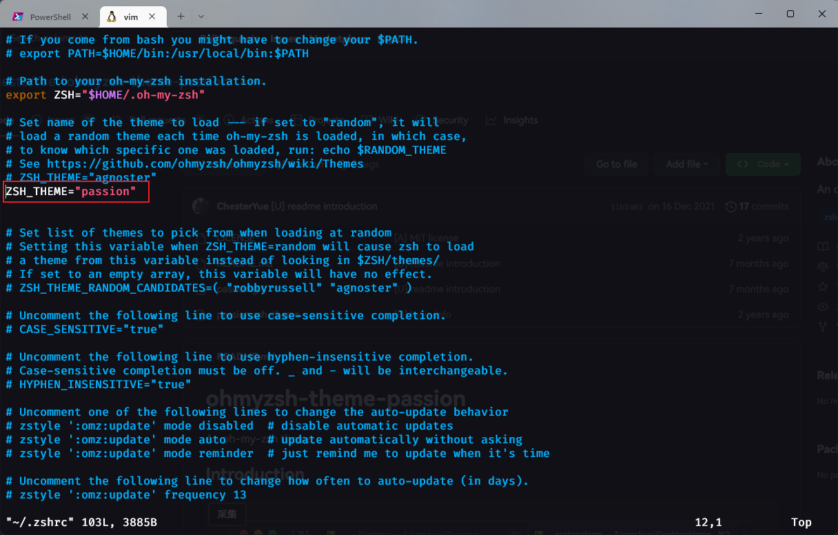 下载 passion.zsh-theme 文件,将它复制到主题目录