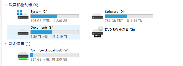 win 下可以 win+r 输入 \\wsl$ 回车,然后将 Arch 的映射到一个盘符