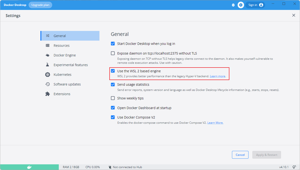 设置里勾选使用 WSL 2 环境,默认勾选就不需要管